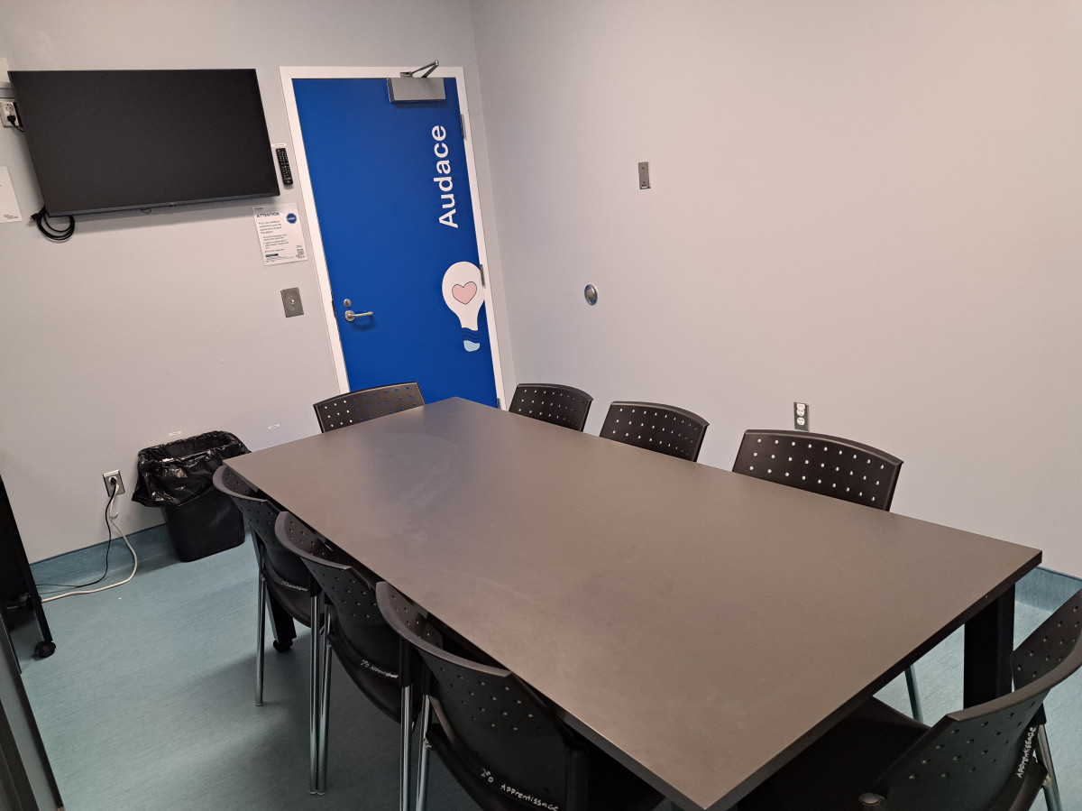 Espace apprentissage Anna-Laberge sous-sol - 8 places En sortant de l’ascenseur veuillez suivre les pastilles autocollantes |